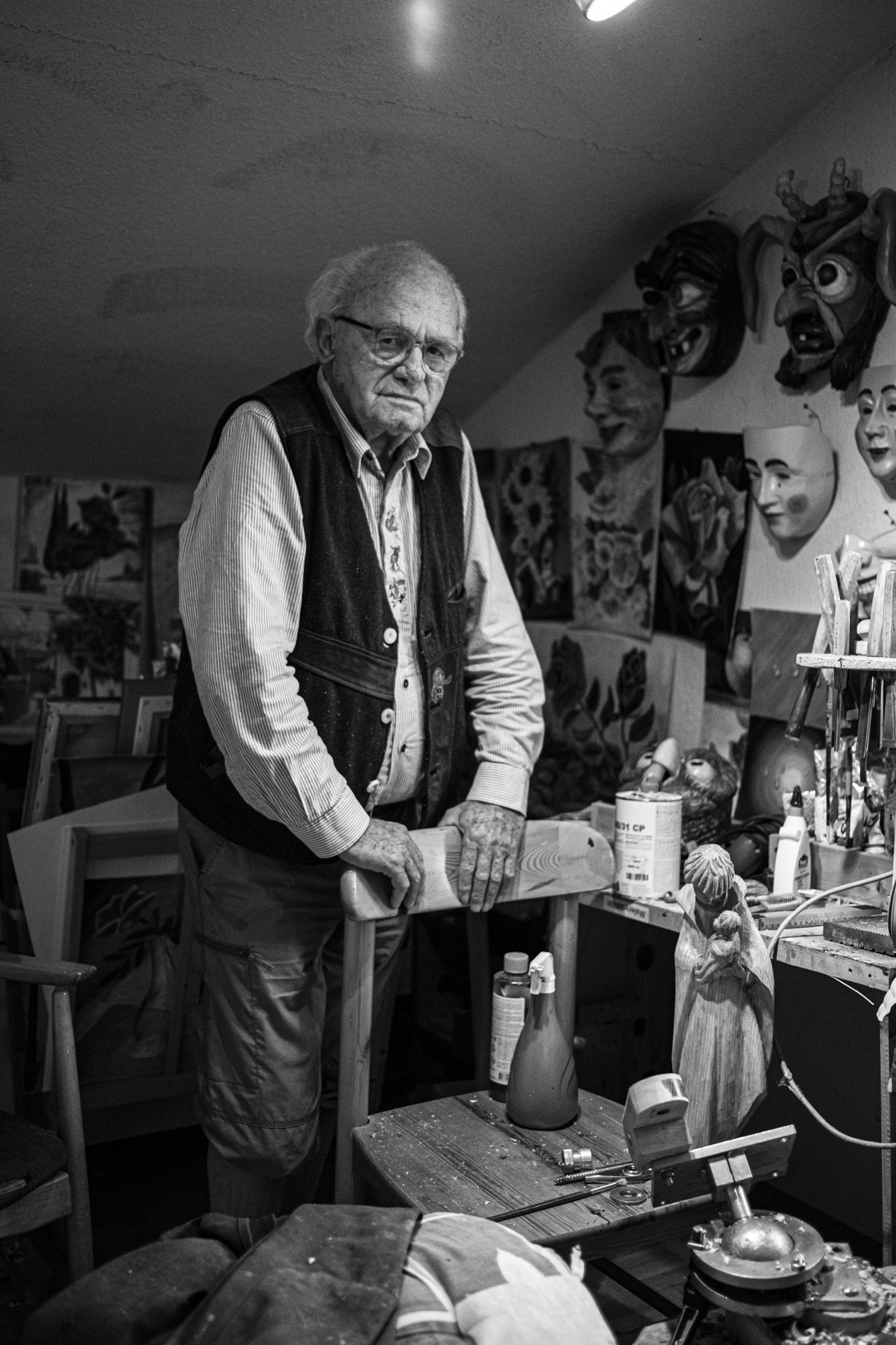 Hermann Schlenker, einer, der in seinem Leben viel geschnitzt hat. Über 50 verschiedene Zünfte waren sein „Hauptprogramm“, wenn es um die Fasnet ging.
