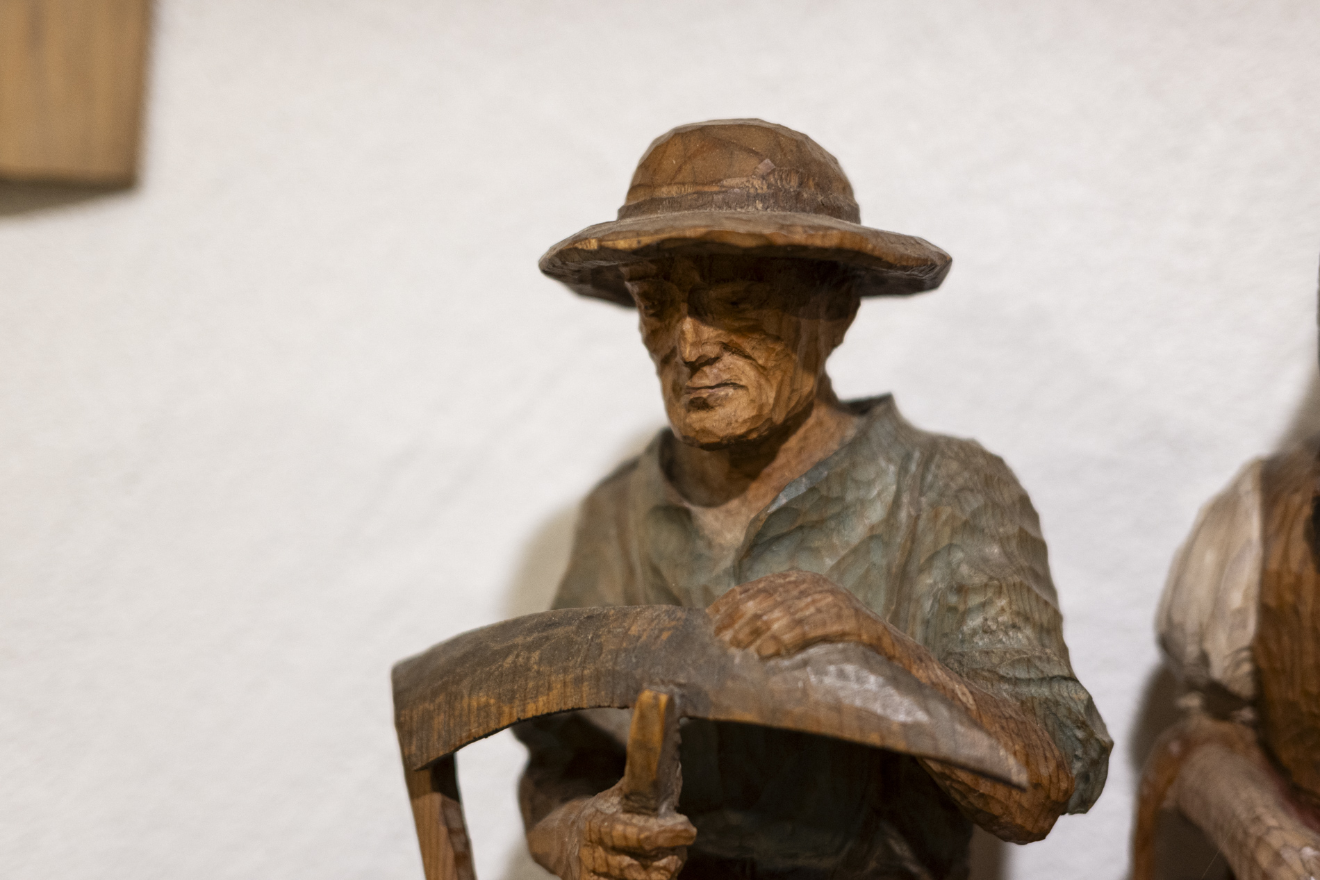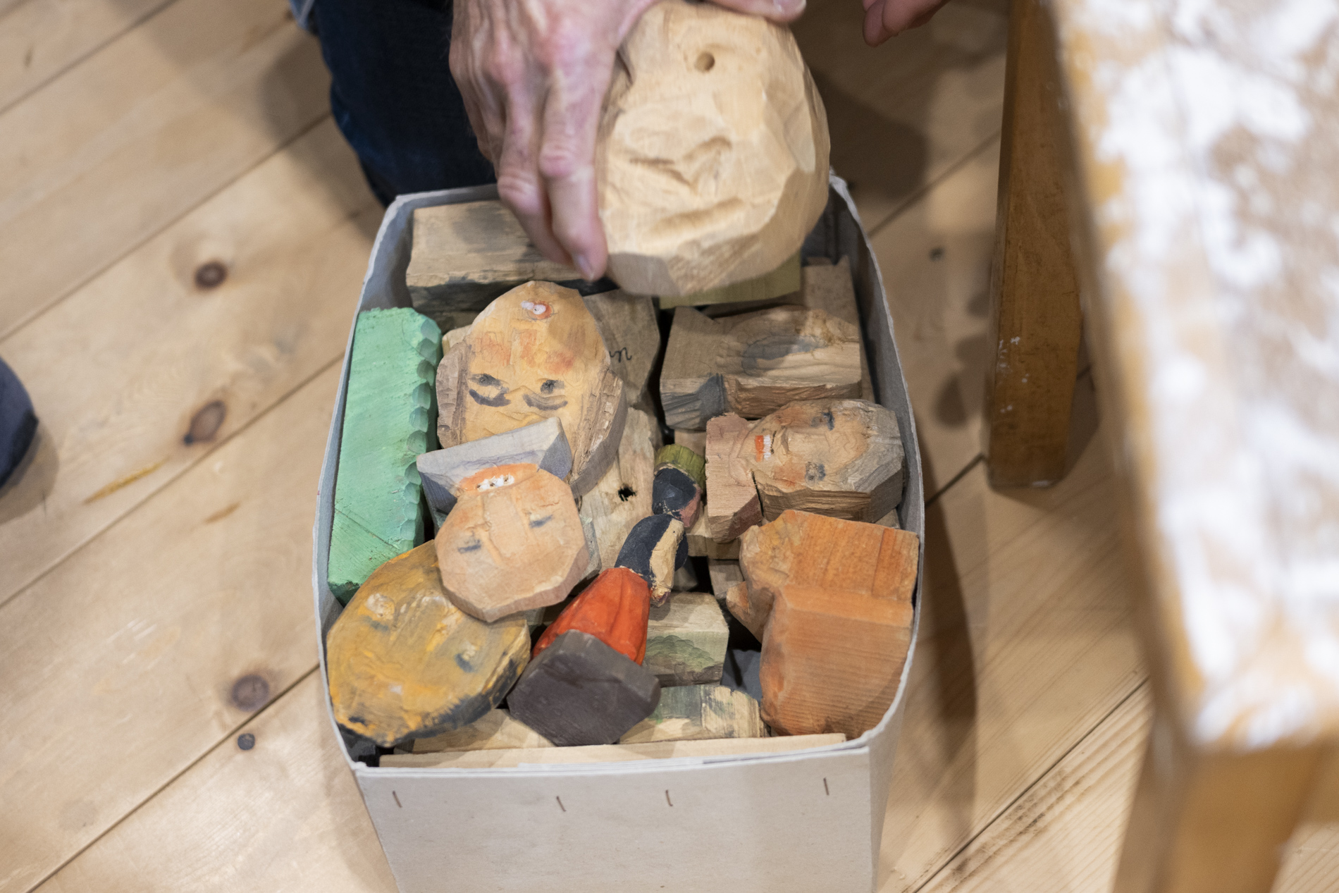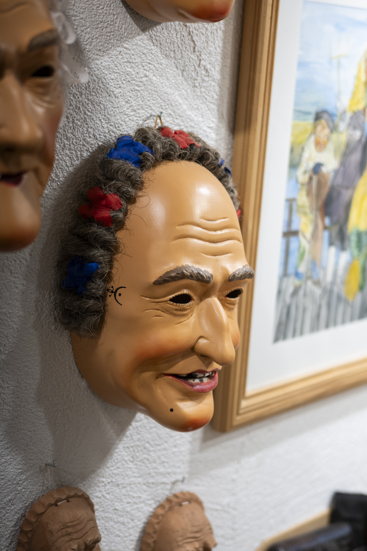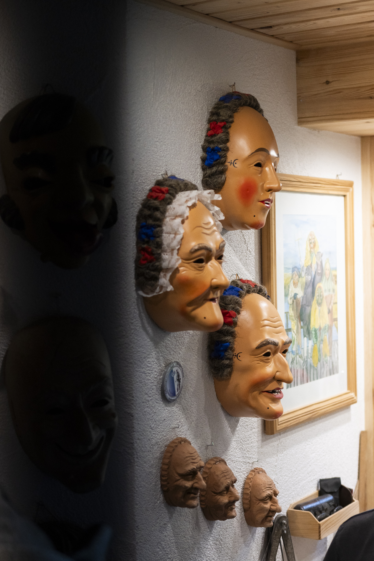 Wir durften das Museum besichtigen und viele Arbeiten von Otmar bewundern. Auch die beiden ersten „Masken“ aus ganz frühen Jahren waren noch da. Kittel und Baskenmützen hingen am Haken, als wäre Otmar erst vorhin aus der Werkstatt gekommen. Beitel und Späne auf dem Boden zeigten die Ecke, in der er am liebsten geschnitzt hat. Eine kleine Zeitreise also – mit einer großen Hommage.