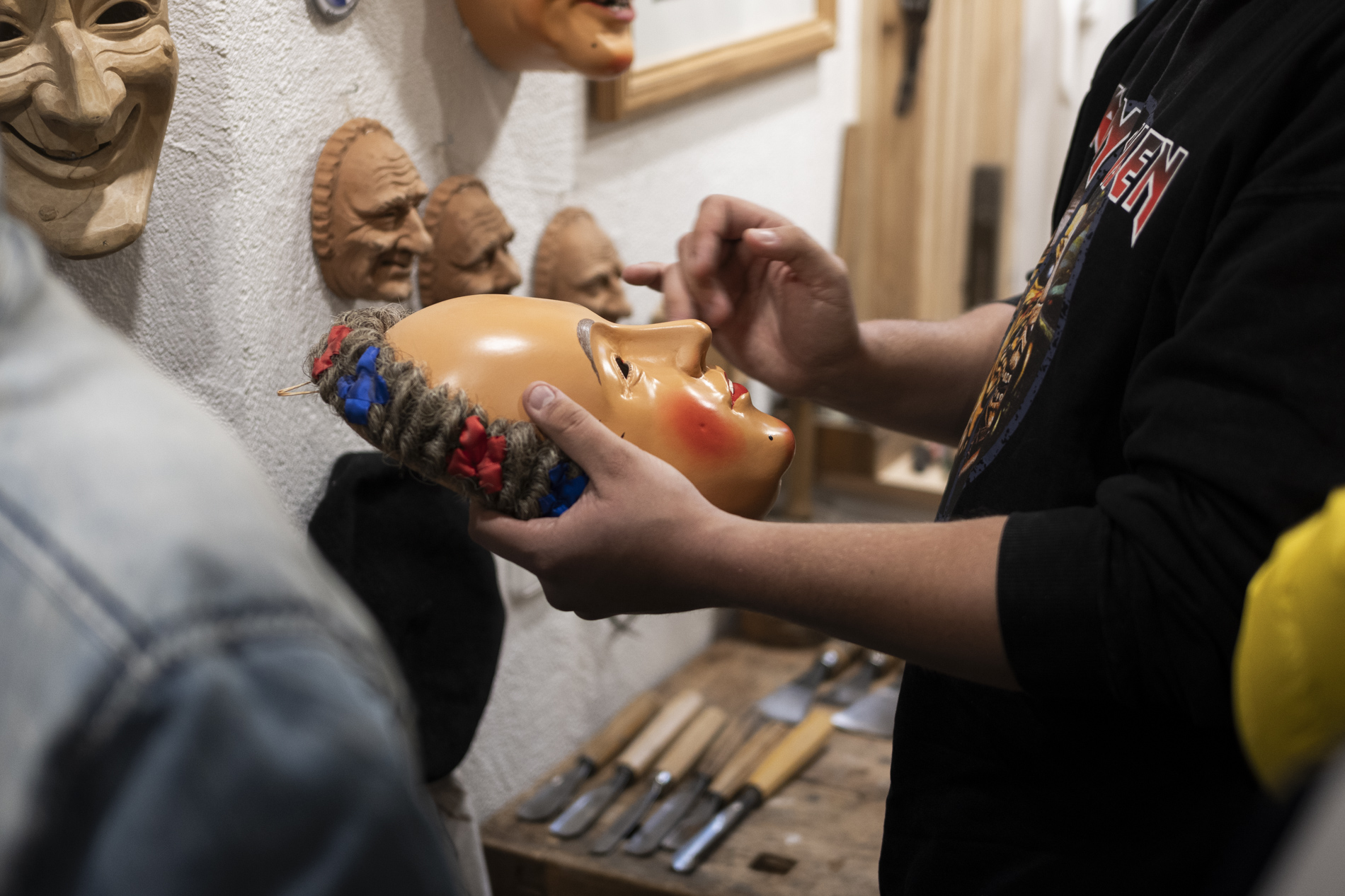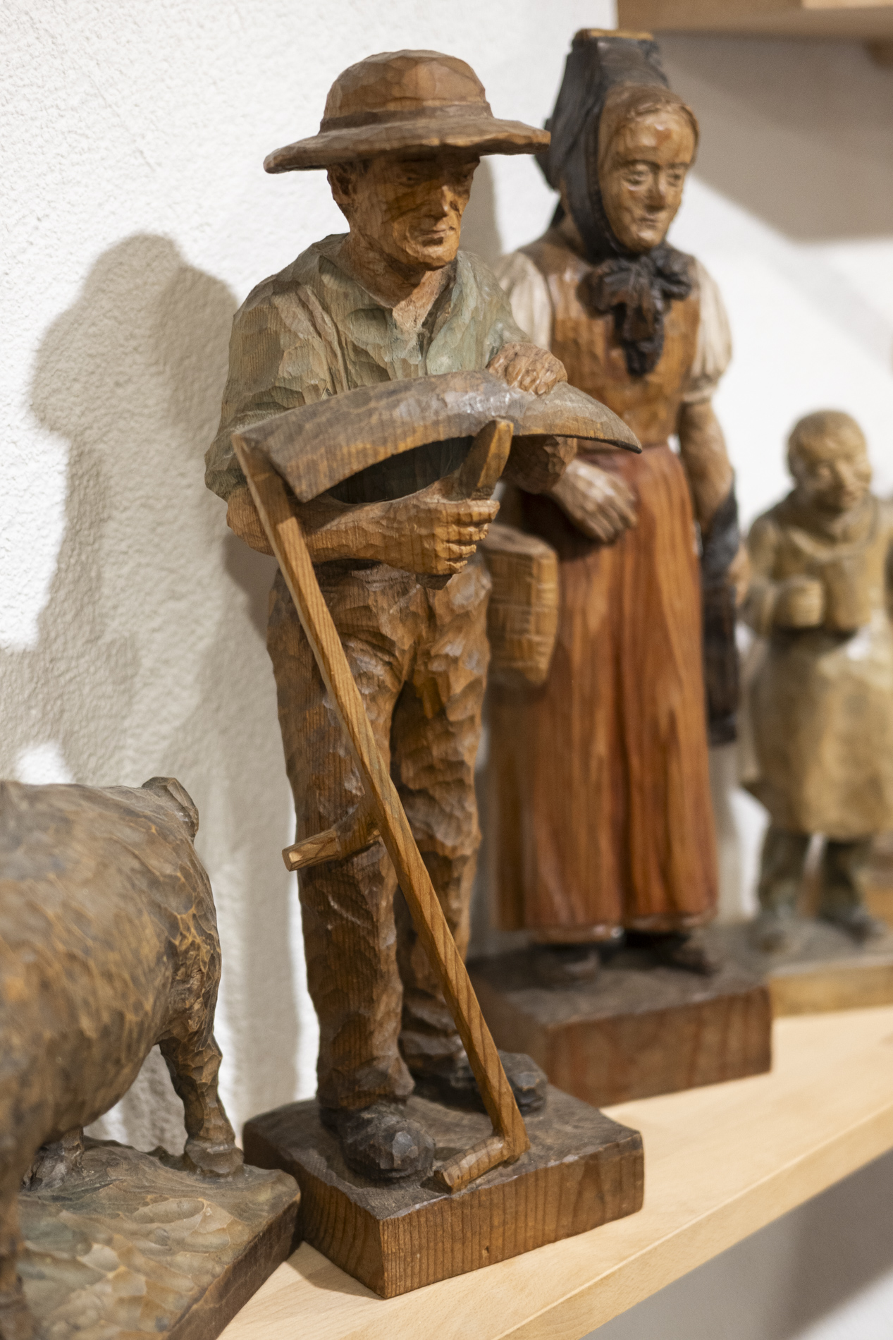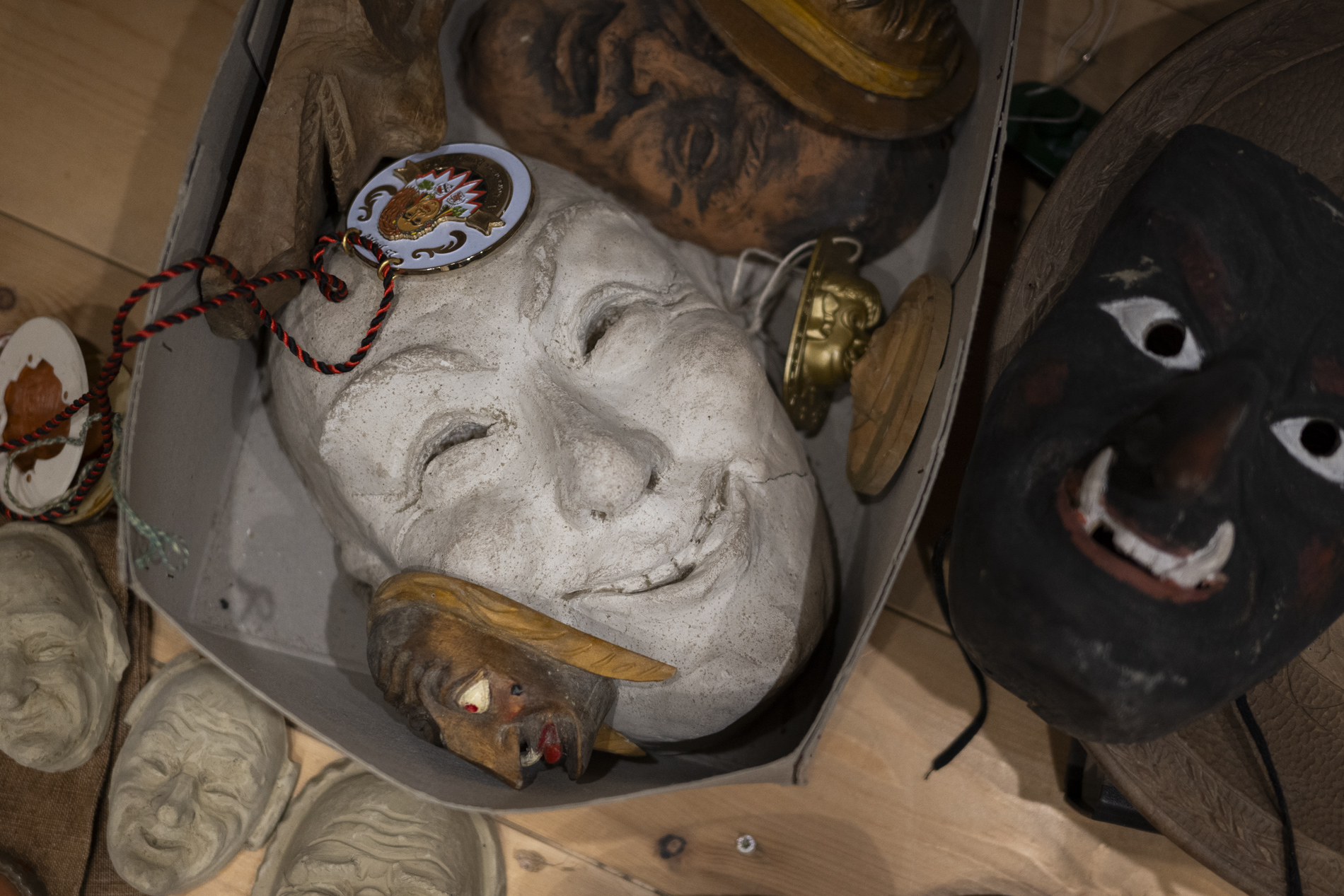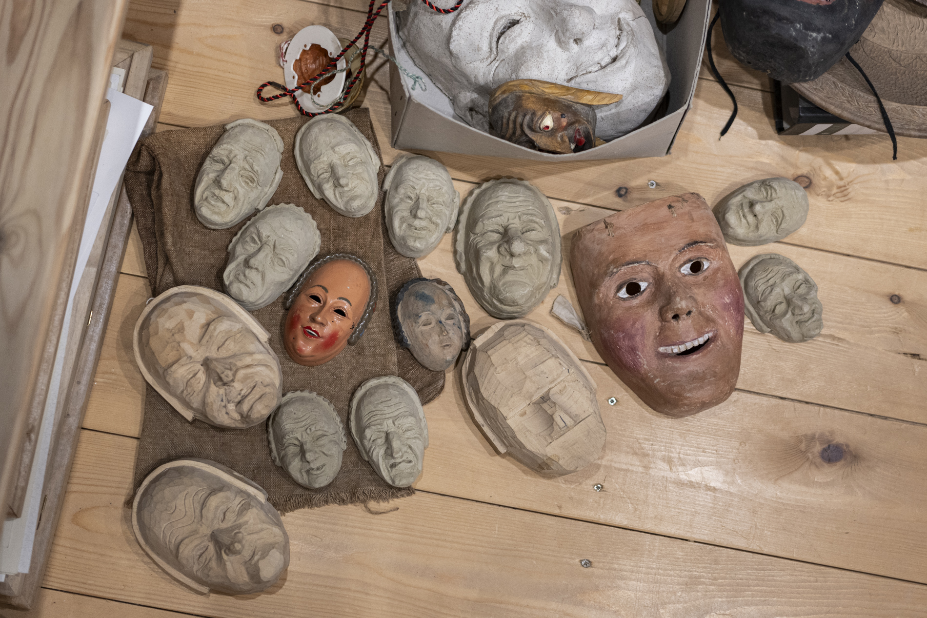 Wir durften das Museum besichtigen und viele Arbeiten von Otmar bewundern. Auch die beiden ersten „Masken“ aus ganz frühen Jahren waren noch da. Kittel und Baskenmützen hingen am Haken, als wäre Otmar erst vorhin aus der Werkstatt gekommen. Beitel und Späne auf dem Boden zeigten die Ecke, in der er am liebsten geschnitzt hat. Eine kleine Zeitreise also – mit einer großen Hommage.