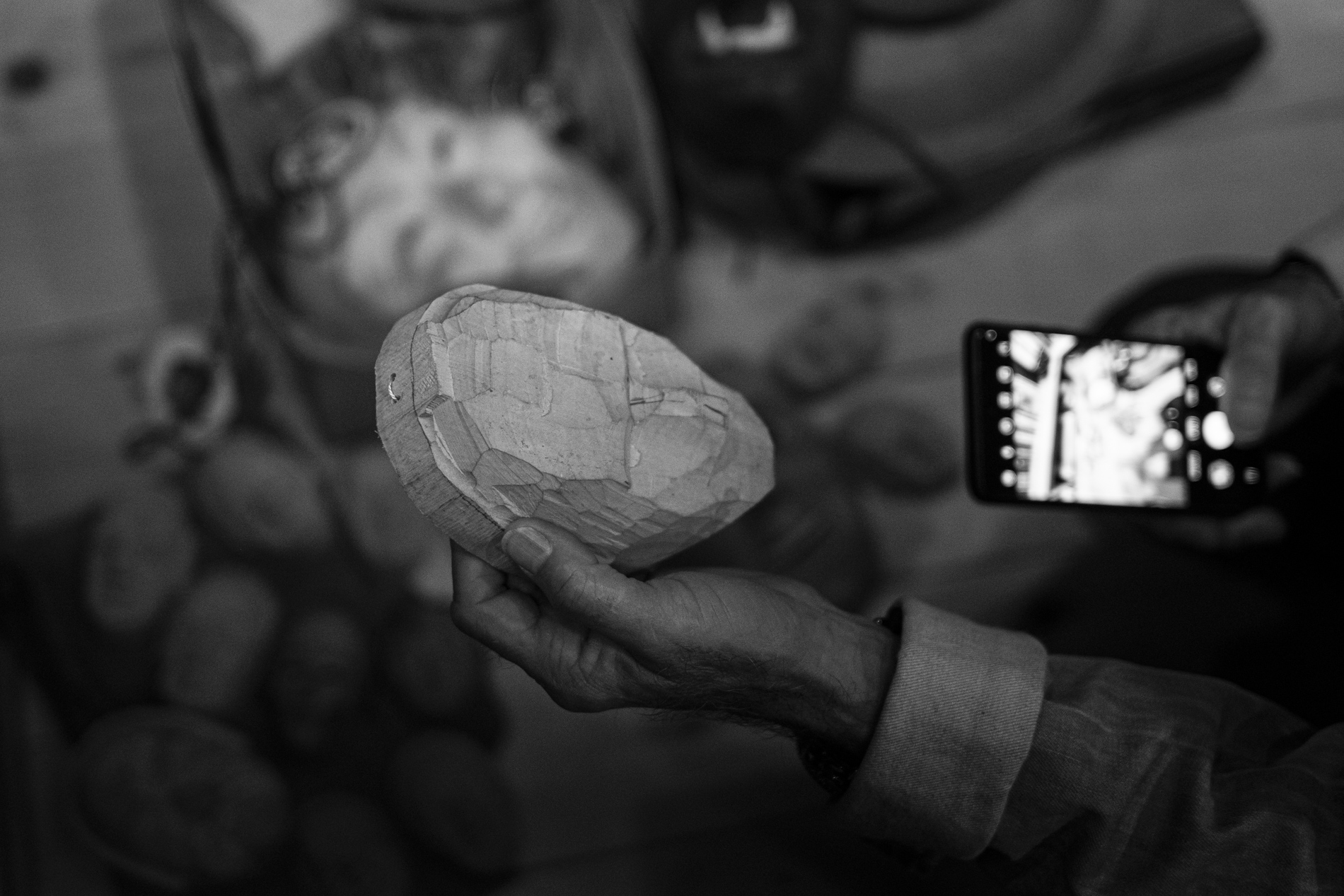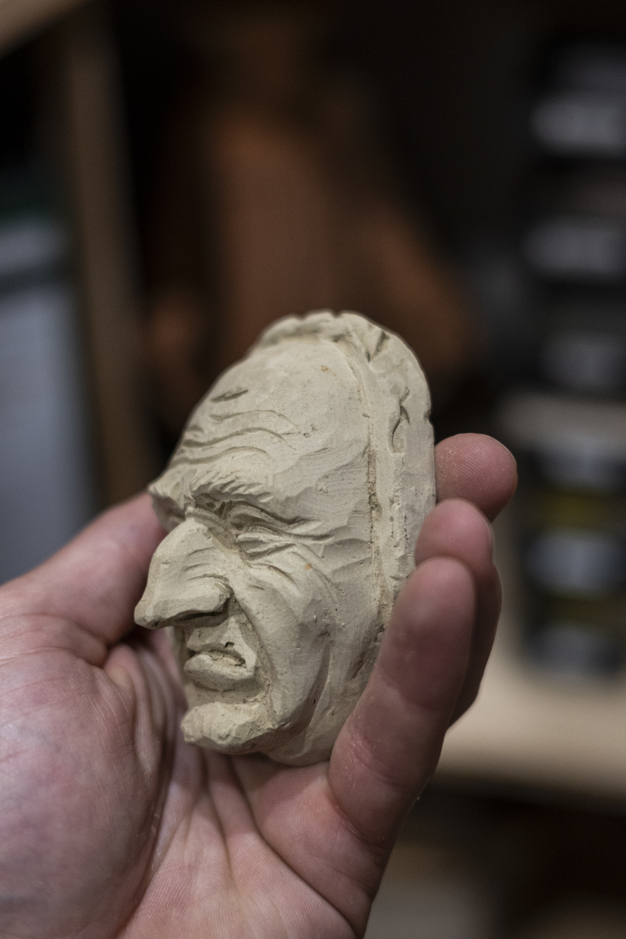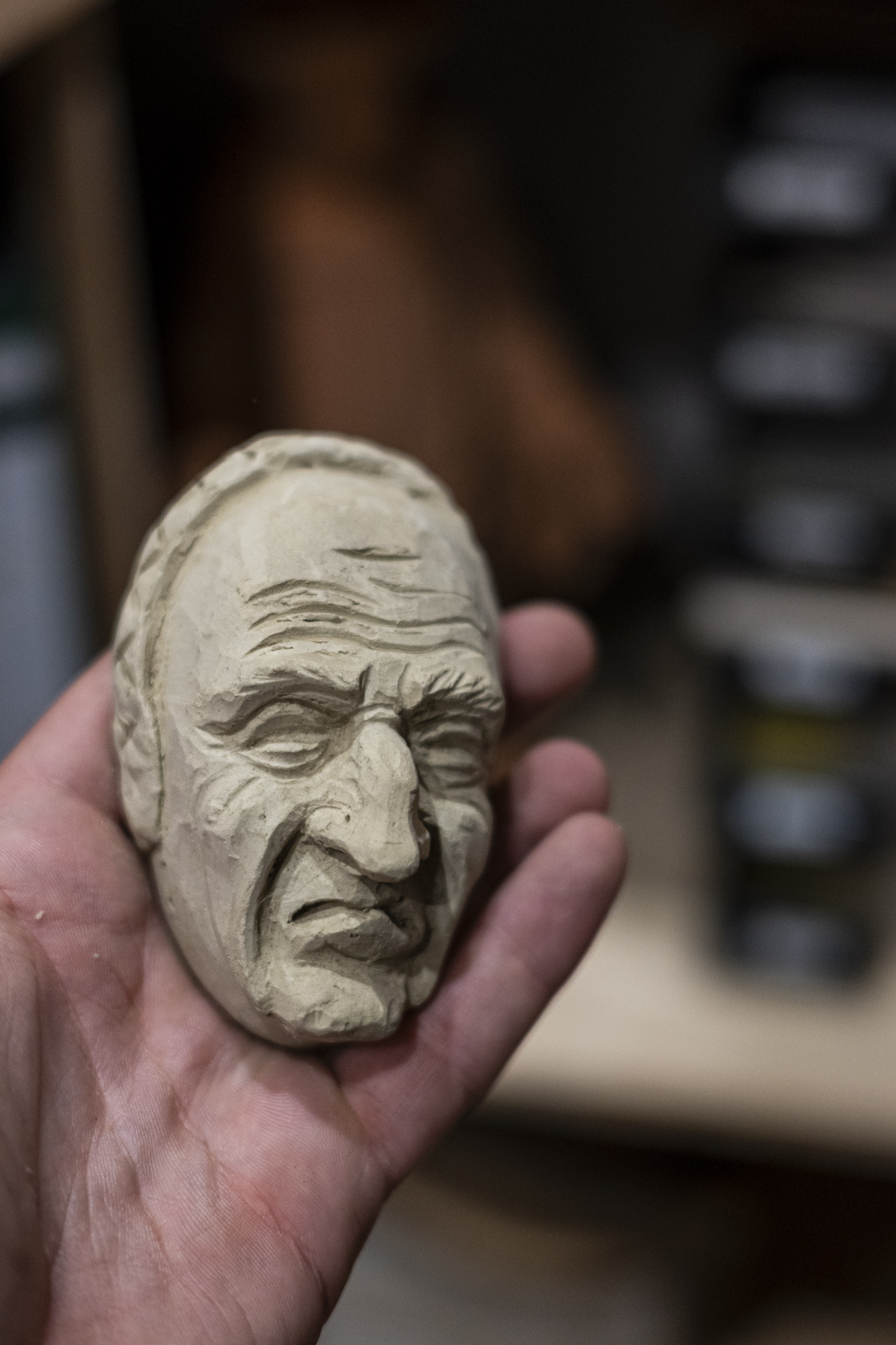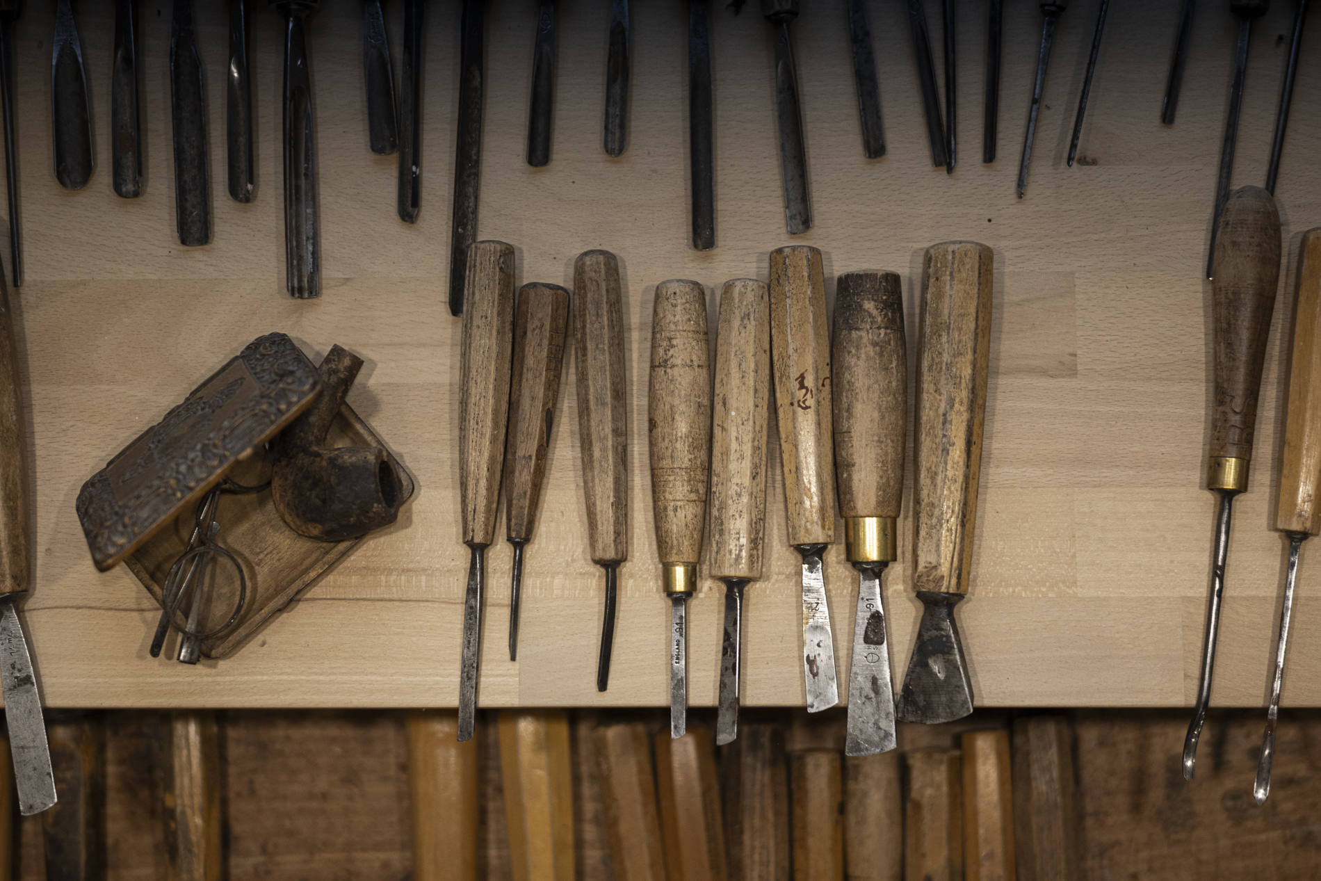 Wir durften das Museum besichtigen und viele Arbeiten von Otmar bewundern. Auch die beiden ersten „Masken“ aus ganz frühen Jahren waren noch da. Kittel und Baskenmützen hingen am Haken, als wäre Otmar erst vorhin aus der Werkstatt gekommen. Beitel und Späne auf dem Boden zeigten die Ecke, in der er am liebsten geschnitzt hat. Eine kleine Zeitreise also – mit einer großen Hommage.