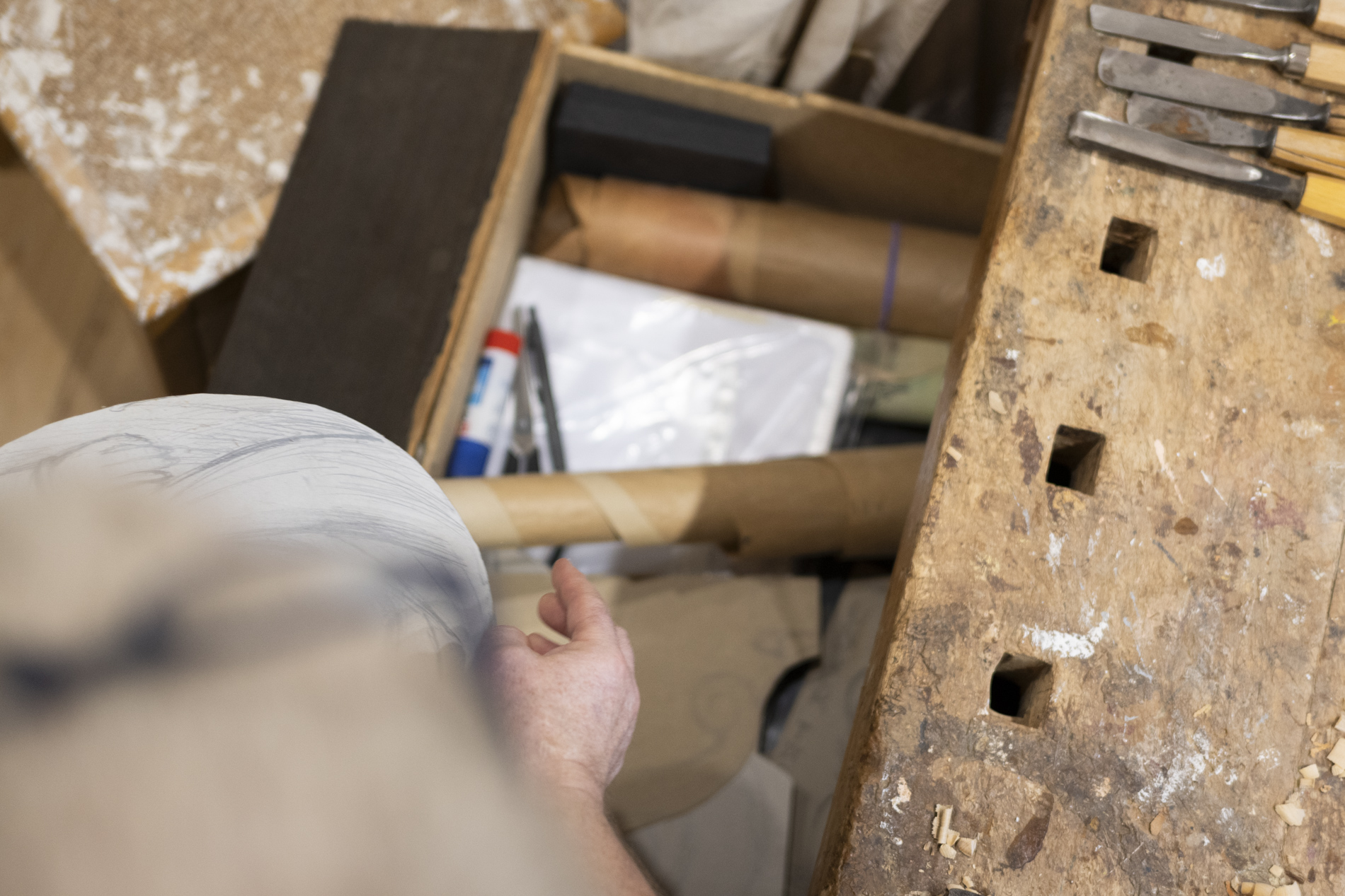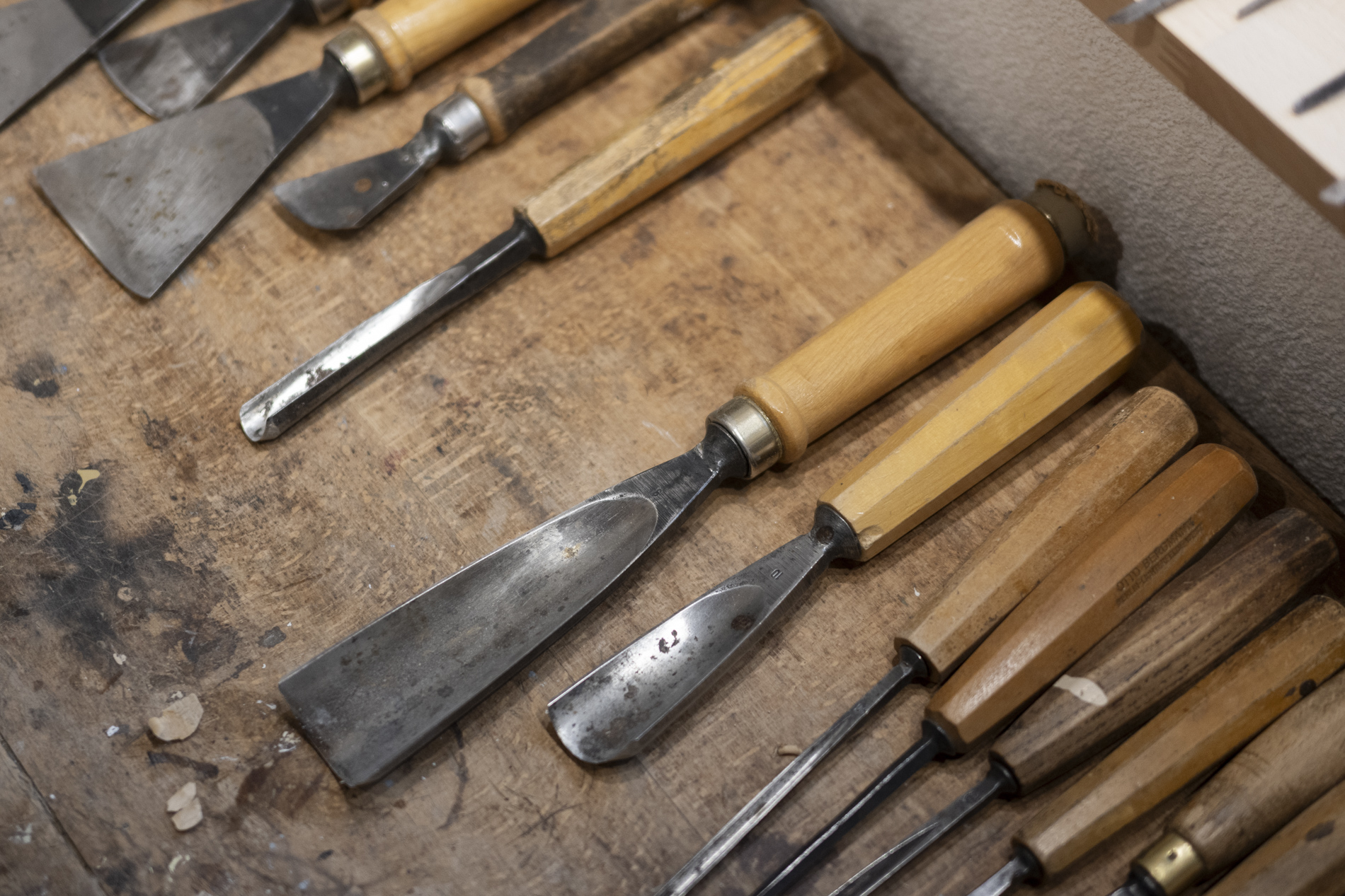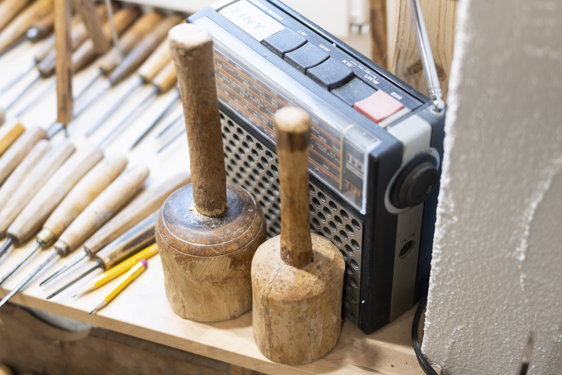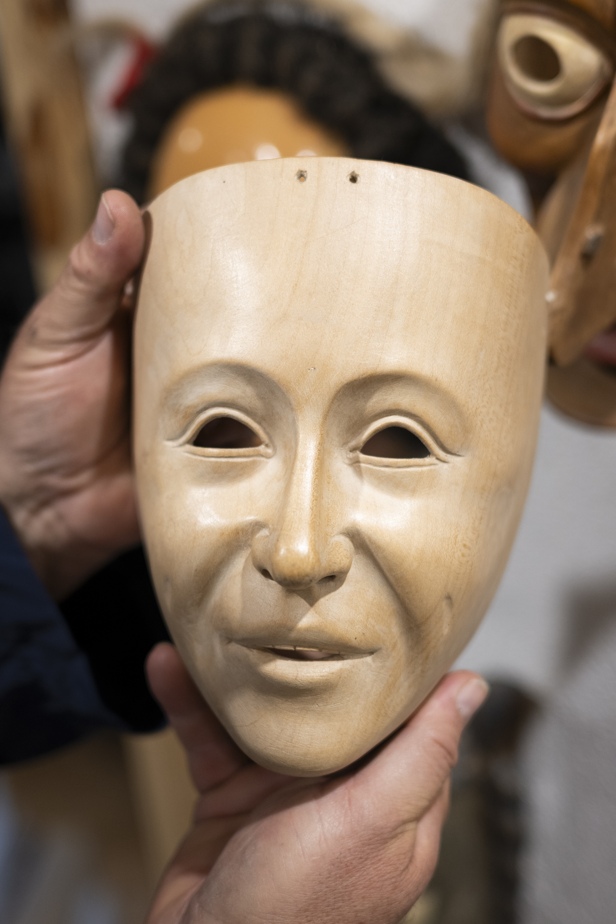 Wir durften das Museum besichtigen und viele Arbeiten von Otmar bewundern. Auch die beiden ersten „Masken“ aus ganz frühen Jahren waren noch da. Kittel und Baskenmützen hingen am Haken, als wäre Otmar erst vorhin aus der Werkstatt gekommen. Beitel und Späne auf dem Boden zeigten die Ecke, in der er am liebsten geschnitzt hat. Eine kleine Zeitreise also – mit einer großen Hommage.