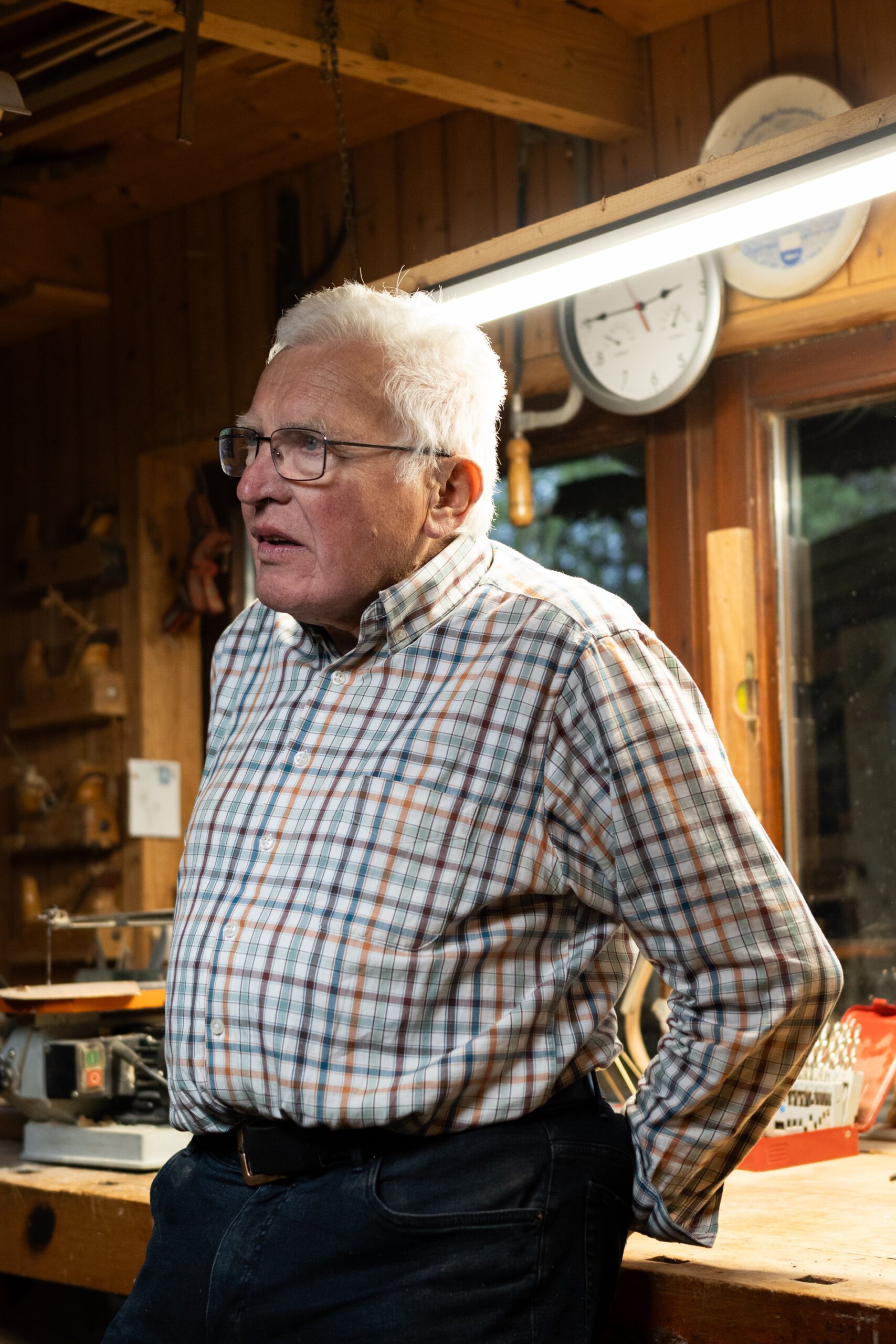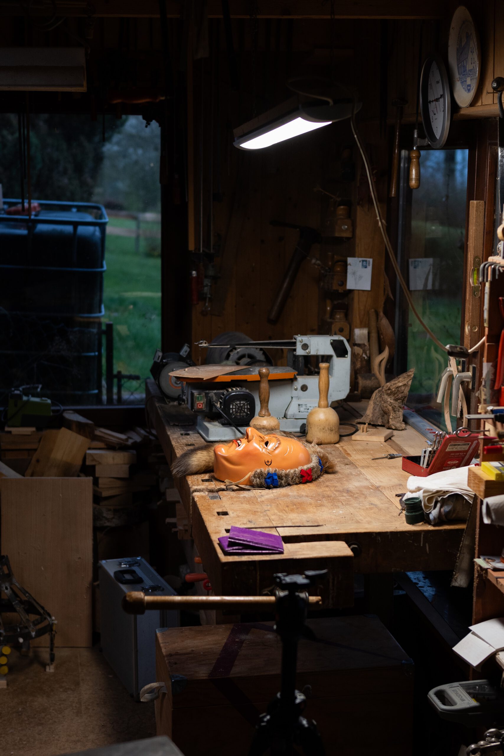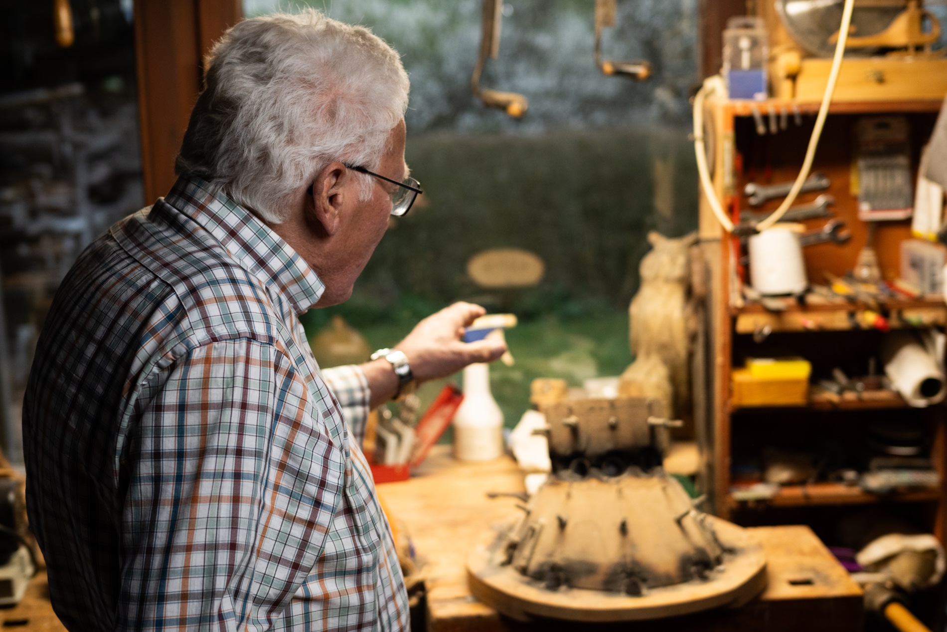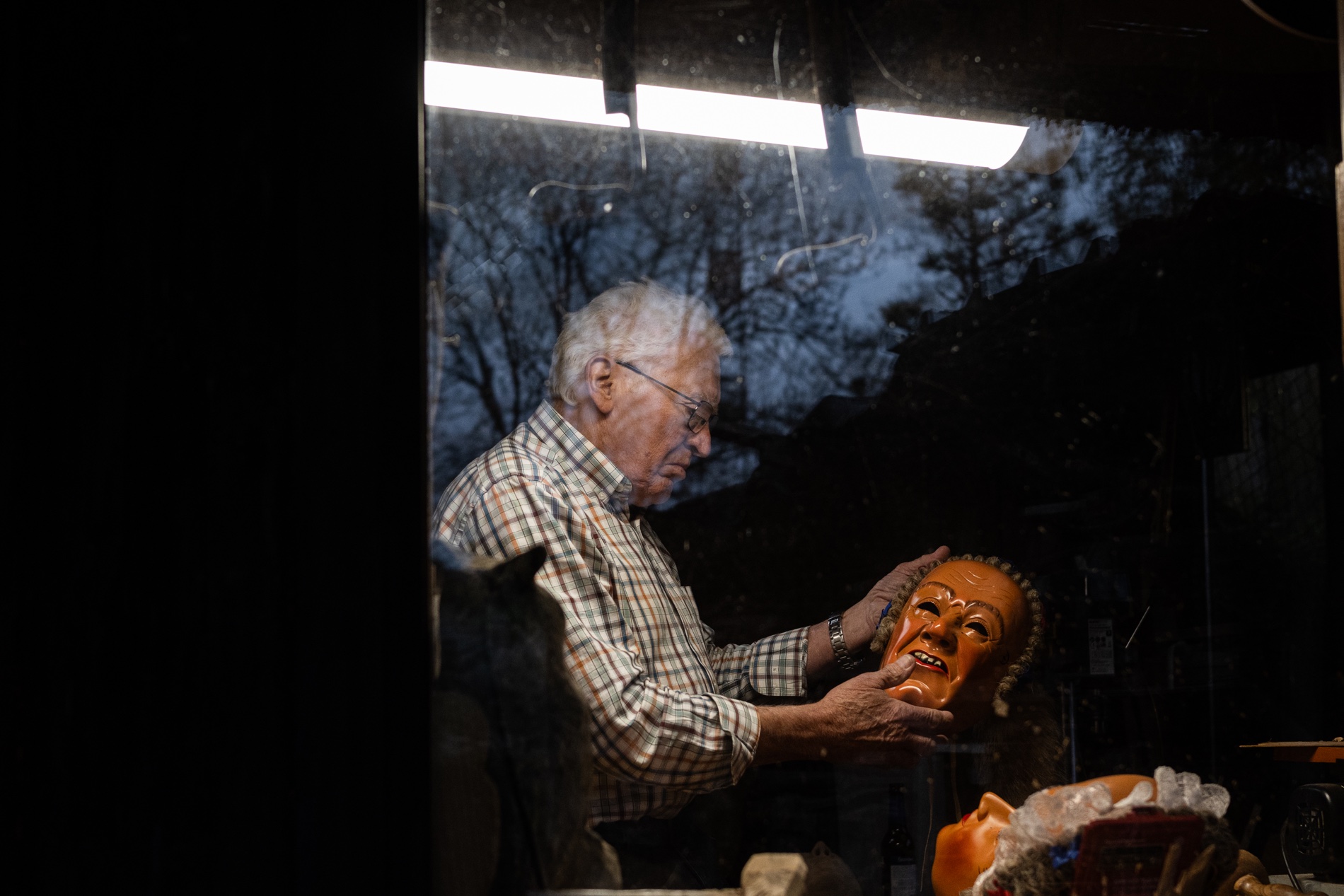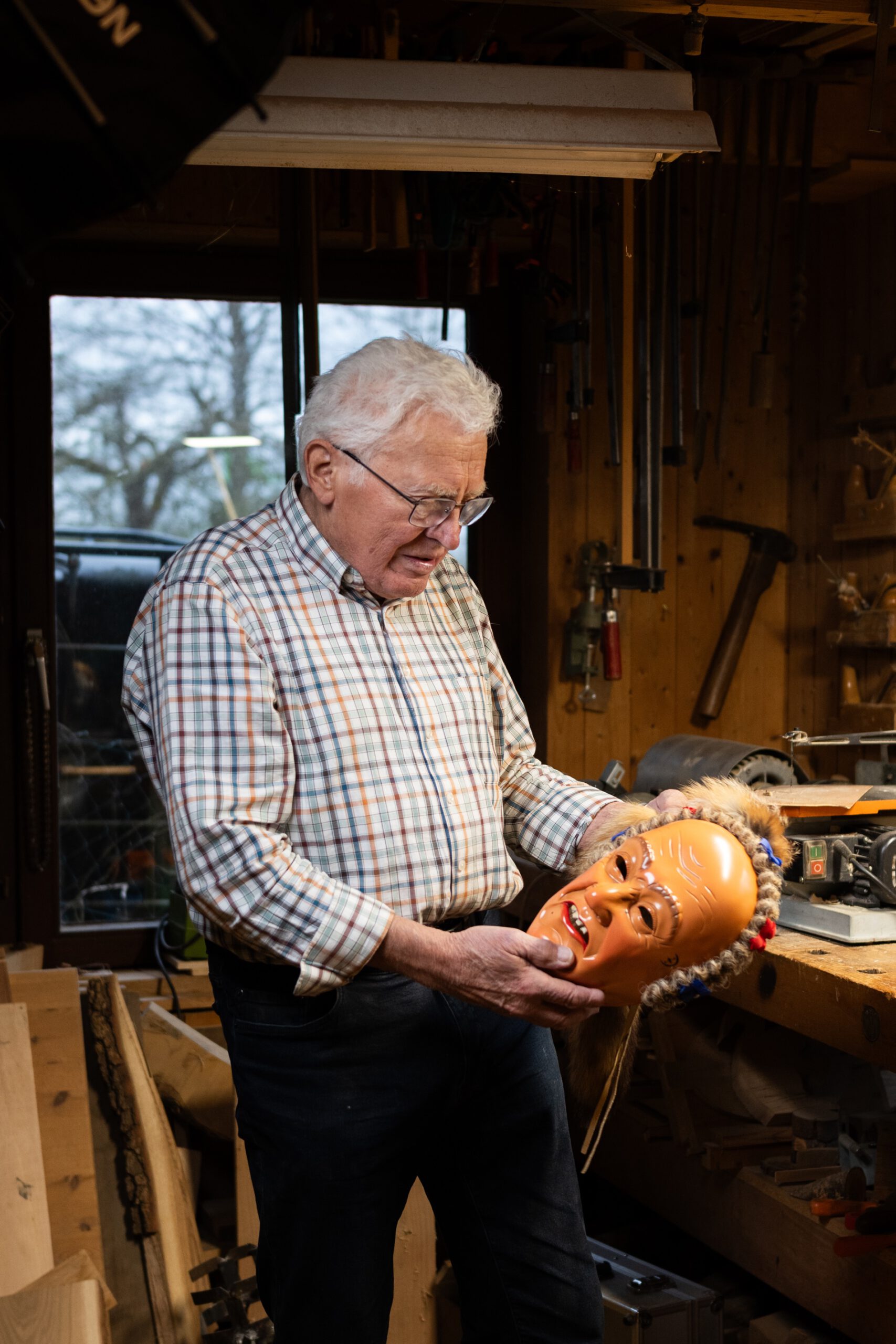 Also war ganz klar, dass wir ihm einen Besuch abstatten. Denn auch er hat früher Schemen geschnitzt, zunächst rein aus Interesse: „Kann ich das auch?“ Mit ein klein wenig Starthilfe, durch denselben Schnitzkurs, den auch sein Freund Thomas Fleig belegt hat, fing Peter an. Und das Ergebnis konnte sich sehen lassen. Verkauft wurden keine Schemen, nur für gute Freunde und Familie gab es „e Scheme vom Stehle Peter“.